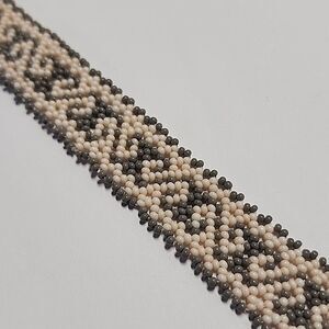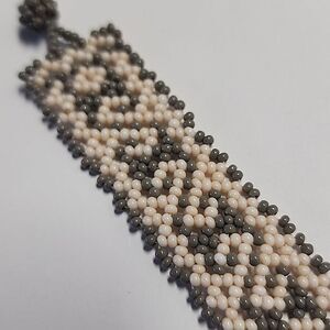 This elegant beaded bracelet features a stunning gray and white design, perfect for adding a touch of sophistication to any outfit. Ideal for any occasion.