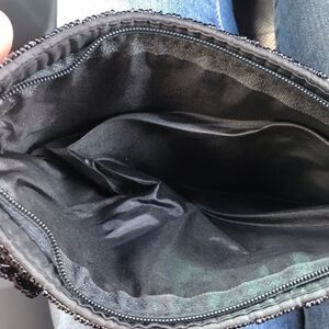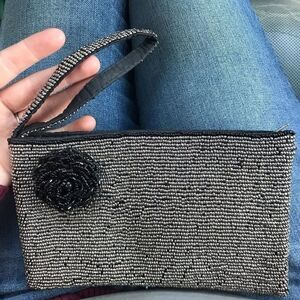 Like new! No missing beads. Silver beads and black beaded flower. Lined pouch with YKK zipper.