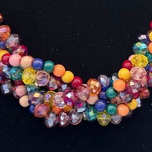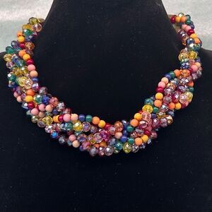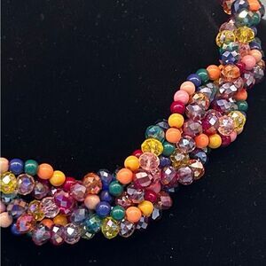 Beaded Collar Necklace Women's 17" Multicolor 5-Strand Multi-faceted Twist Beads