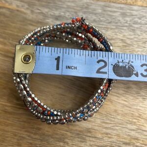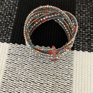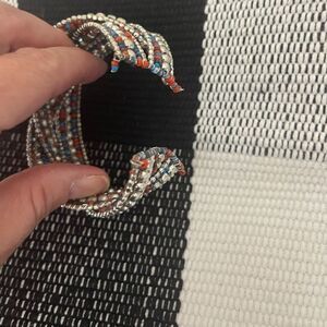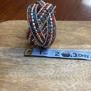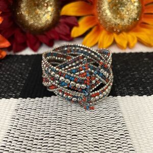 Handmade Beaded Cuff Bracelet. Bracelet is in good preowned condition. Cuff bracelet expands/stretches. Measures approximately 1.5” wide.