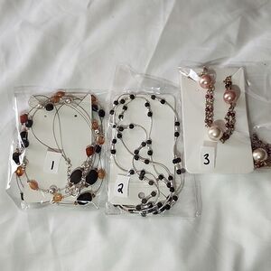 Beaded Necklace #1 Black and Brown Beads #2 Black Beads #3 Pinkish Pearl-like #MLD