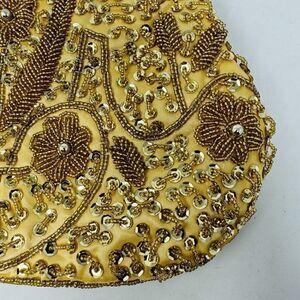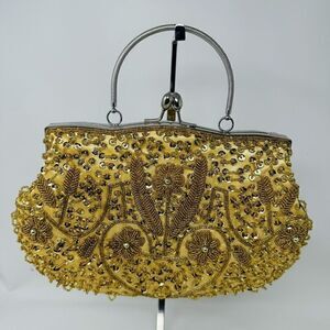 Beaded Sequin Gold Kiss Lock Satin Interior, Chain Strap Evening Bag Handbag