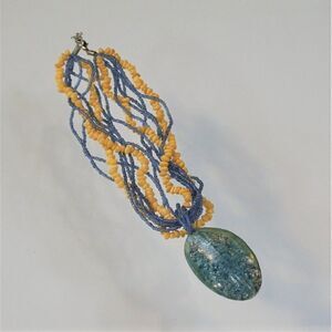 Beaded Statement Necklace Multi Strand White and Blue Accent Fashion Mod