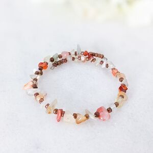 Beaded crystal bracelet that fits just about any size wrist. Boho earth tone colored stones. Excellent pre-owned condition