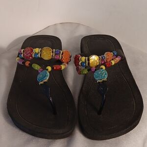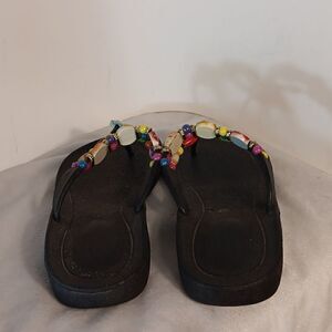 These very colorful beaded thong sandals are a size 10 and measures 10.5" from heel to toe. In excellent condition. All offers are welcome.