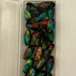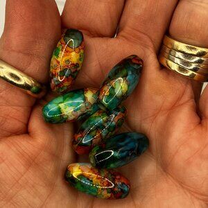 Beads 30 Oblong Glass Beads Hand Painted Colorful beads for making jewelry NEW