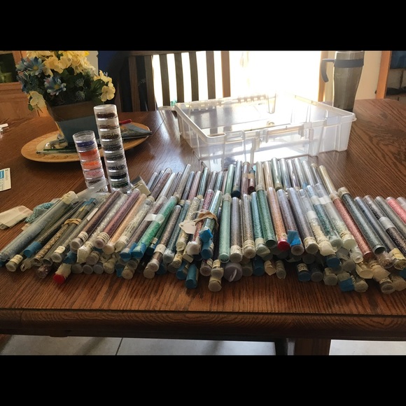 All sorts of seed beads. There’s over 130 different colors. Asking 110.00. Most I pd 3.00 or more for. Beautiful colors and different sizes.
