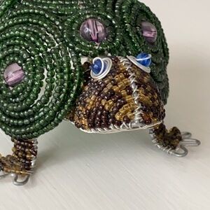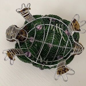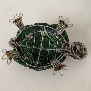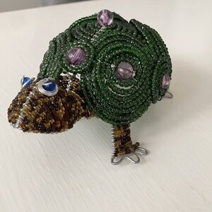 Beadworx Beaded Turtle Purple Accents Blue Eyes Decor Art Piece Gift Vintage