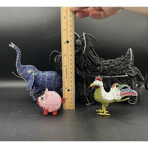 Beadworx By Grassroots Lot Of 4 Beaded Sculpture Dog Elephant Pig Rooster Farm