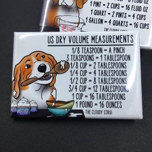 This cute, magnet set contains 2 high quality handmade magnets. There is a dry conversion chart on one magnet and a liquid conversion chart on the other magnet. Each magnet measures 2x3". Makes a perfect gift for Christmas, Mother's Day, Valentine's Day and birthdays!