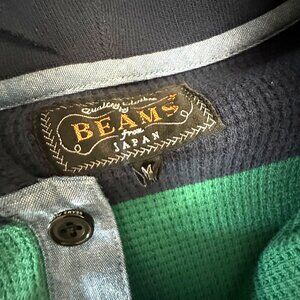 Beams Japan Double Face Hoodie Mens Medium Sweatshirt Preppy Stripe Thermal