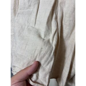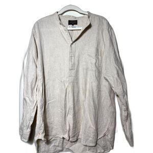 Beams Plus Band collar popover shirt natural cotton/linen herringbone sz Large