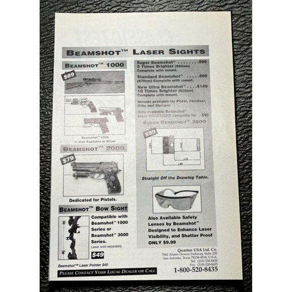 Beamshot Laser Sights Vintage Print Ad 1990s Firearms Accessories Quarton USA