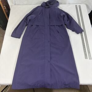 Bean Coat Womens Petite Medium Purple Hooded Long Rain Trench Jacket Waterproof