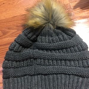 Grey beanie with pom. Never worn