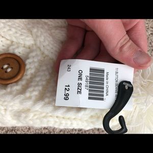 Super cute beanie, still with tags, with brown buttons and a puff ball at the top! Has never been worn and is super duper cute and goes well with any outfit!!