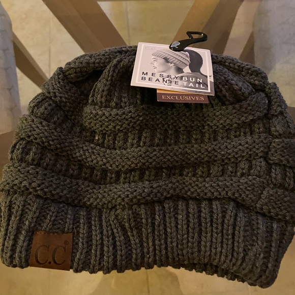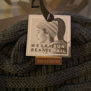 Messy bun beanie in grey. For the ladies who wants to wear a beanie and a ponytail!!