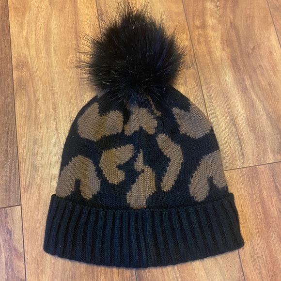 Black and brown beanie Black fake fur Pom Pom Worn once just not my style Excellent condition