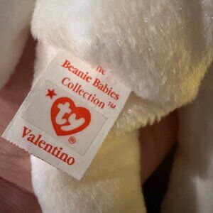 NWT set of four beanie babies. All have the plastic tag protectors. Vaentino 93/94 in pristine condition, B.B Bear , Halo 2, and Ty Pluffies Baby Bear which is rare and the outfit is actually removable.
