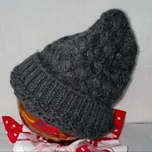 Beanie Knit Shimmer Yarn Crochet Fold Over Thick Warm Pull On Warm Winter Hat