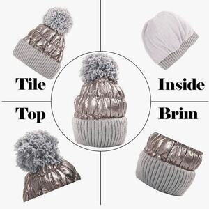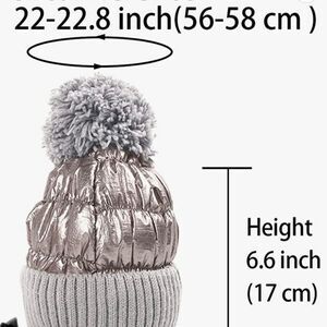 Beanie puffer Cuff Beanie Skull hat pom Pompom Fleece Lined Winter Cap Down Beanie Hats for Women Girls.