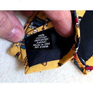 This is a handsome tie that features cartoon images of street items like food carts, vegetable stands, shoeshine stands, and pedestrians on a background of tangerine/honey. It measures 54" long and 3.75" at the widest point. Feel free to ask questions. Sorry, no shipping Saturdays.