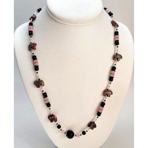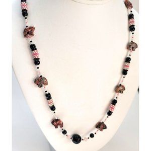Bear Agate Stone Necklace with Glass Beads in Red, Black and Pink Jewelry DH802