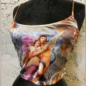 Stylish bandeau with a captivating artistic printed version of the classic Le Ravissement de Psyche. Features vibrant colors and a unique design. Perfect for a bold look.