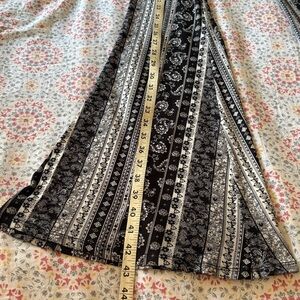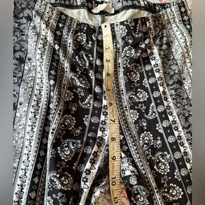Stylish black and white leggings. Intricate pattern design. Flare leg style. Comfortable fit.just added measurements