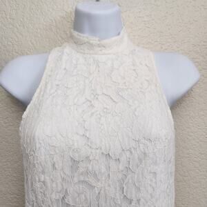 Bear Dance White Lace Overlay Sleeveless Fit N Flare Mini Dress Small Lined