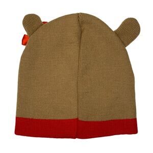 Bear Face Beanie with Red Bow On One Ear OS
