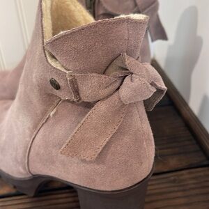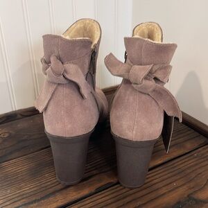 Bear Paw Suede Bow Back Heeled Ankle Boots