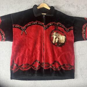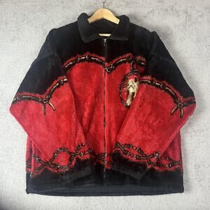 Bear Ridge Outfitters Jacket Mens 2XL Red Black Horse Western Fleece Zip USA