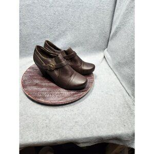 Bear Traps Womens Brown Leather Low Heeled Ankle Booties With Buckle Strap