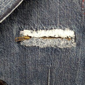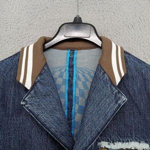 Bear USA Jacket Mens 38R Blue Jean Denim Button Up Distressed Retro Blazer Y2K