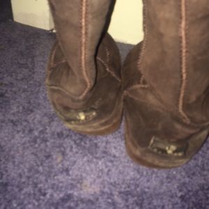 Boots in good condition except for soles( shown in 3rd picture) no holes in suede