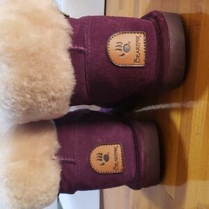 BearPaw. Abby; Purple Sheep Skin Suede; Wool Blend Lining; Like New. Size 7.
