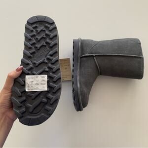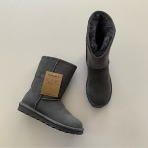 BearPaw Elle Short 8 Inch Gray Classic Suede Cozy Winter Boots Size 6