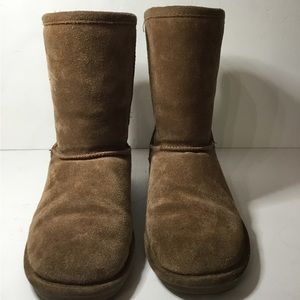 BearPaw Emma Short Suede Sheepskin Slip On Boots Size 9 EUC