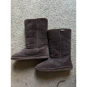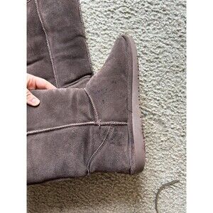 BearPaw Emma Tall Suede Sheepskin Lined Flat Casual Boots Size 9 Dark Brown