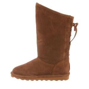 BearPaw Phylly Tall Suede Boot Lace Up Back Detail In Hickory Size 8 New In Box