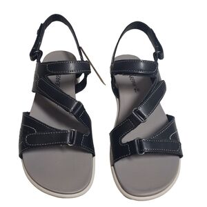 BearPaw Reed Black Open Toe Slingback Flat Sandals Sz 8