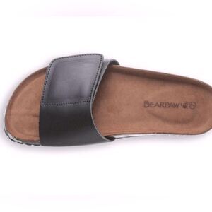 BearPaw Sibyl Leather Slides Sandals Women Size 9 Black Velcro Adjustable NEW