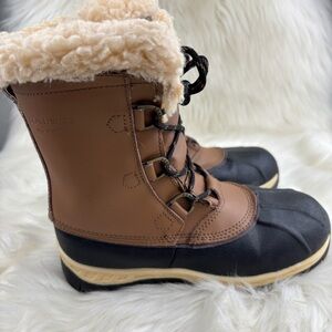 BearPaw Tan and Black Winter Boots. size 3 Kids