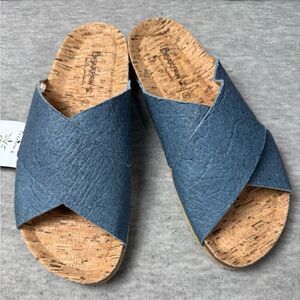 BearPaw Vegan Pina Womens Size 8 Indigo Slip On Footbed Slide Sandals 2432W NWT