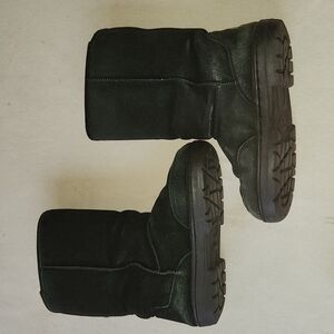 Bearpaw black W7 boots with sheep skin lining and suede upper.