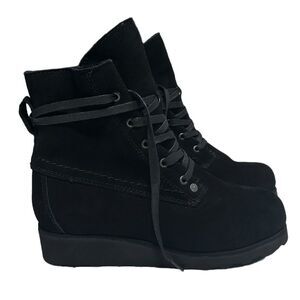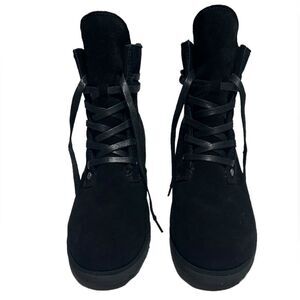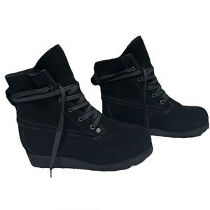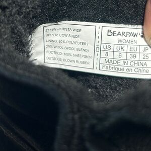 BearPaw Krista Cow Suede Wool Lined Boots Black Winter Boots Sheepskin Footbed