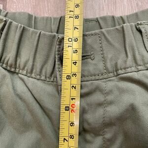 Bearbottom women’s jogger pants in size Small, crafted from a comfortable blend of 97% cotton and 3% spandex for a soft, breathable feel with added stretch. Olive green color, chino-style jogger silhouette with elastic waistband, zip-fly, side pockets, and elastic cuffs. Flattering 10" rise, 29" inseam, and 12" flat-lay waist. Perfect for casual wear, travel, or athleisure looks. In excellent pre-owned condition with no major flaws. Made in India, RN #141334. Machine washable for easy care.