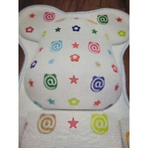 Delightfully quirky, this floor mat transforms any space into a playful haven. Dotted with colorful "at" symbols, stars, and flowers against a pristine white backdrop, this unique piece offers a whimsical twist on everyday decor. Imagine sinking your feet into the soft texture, adding a touch of fun to nurseries, playrooms, or even a trendy living area. Its eye-catching design is perfect for adding a pop of personality to children's spaces or as a conversation-starting accent piece in modern homes. Envision this floor mat bringing joy to kids' bedrooms, brightening up play areas, or making a bold statement in eclectic living rooms. 31" x 16"