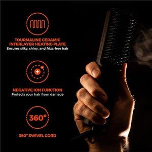 🧿Heat it Up: The brush heats up to 400 degrees Fahrenheit, with 3 temperature settings to best fit your beard’s needs. The negative ion function protects your hair from damage.